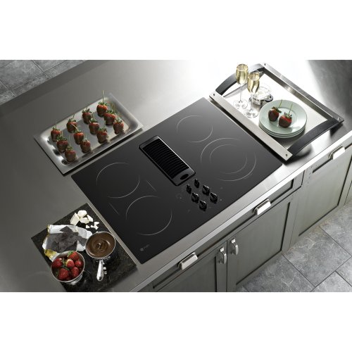The reason we choose this particular model was that it seems to be the ONLY smooth cooktop of any major brand with downdraft exhaust and a bridge element.